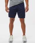 Augusta Adult 7-Inche Inseam Octane Shorts. 100% polyester wicking knit. Wicks moisture. Covered elastic waistband with inside drawcord. 7-inch inseam. Tagless label. Full cut. Youth inseam is graded.