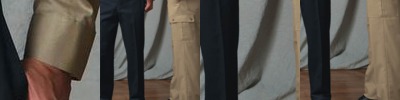 - Two pleated cargo pockets, two back patch pockets with concealed snap closures