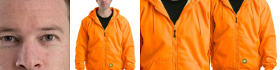 - Three-piece hood with drawcord